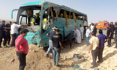 Head of the South Sinai security directorate Mahmoud Henfawi stated that the bus carrying no less than forty Mexican tourists fell over and caught on fire.