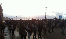 He said he was arrested a few miles away from the clashes, which were taking place outside the Alexandria criminal court. A policeman pointed a gun at his head and he was dragged to a police vehicle along with a friend who “was beaten on the head until he lost consciousness.”