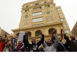 Hundreds of people throwing petrol bombs and rocks attacked the building, which caught fire as guards and Brotherhood members inside the building exchanged gunfire with attackers in Cairo’s Moqattam district.