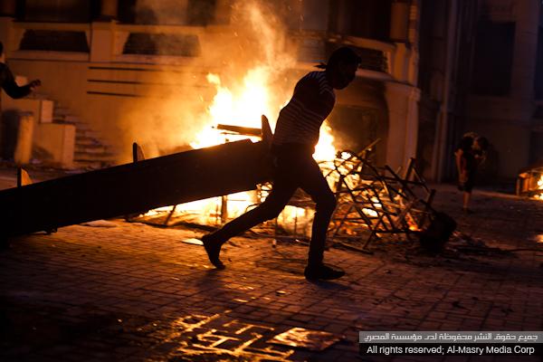 Earlier on Saturday, clashes took place on Qasr al-Aini Street between security forces and protesters in front of the Shura Council, and raged for hours as they spread to other streets surrounding Tahrir.