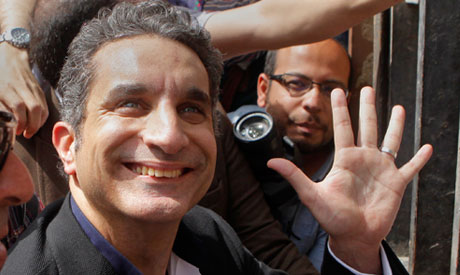 Popular television show host and satirist Youssef is currently facing charges of insulting President Morsi and denigrating Islam. An arrest warrant was issued for him last week and he was interrogated by prosecutors, then bailed on Sunday.