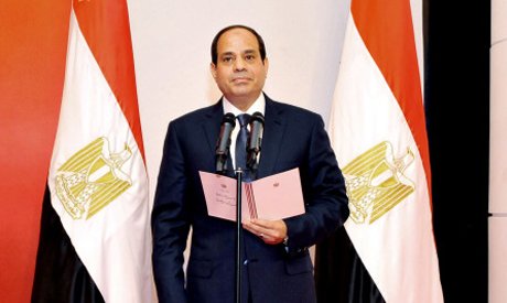 He took the presidential oath at the Supreme Constitutional Court at an event attended by former interim president Adly Mansour, Prime Minister Ibrahim Mahlab, Al-Azhar Grand Imam Ahmed El-Tayib and Coptic Orthodox Pope Tawdaros II.