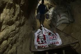 The network of tunnels that snake underneath the border between Gaza and Egypt are dark, dingy and dangerous, but they have proved invaluable to transport supplies and fuel past the Israeli blockade. One commodity to be smuggled inside impoverished Gaza, though, is raising eyebrows: KFC fried chicken.