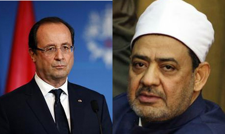 Al-Tayeb, who met with the French president on Tuesday, added in a media statement that he agreed with President Hollande on an official exchange between Islamic institutions in France and Al-Azhar in order to educate a new generation of Islamic scholars and leaders about the religion in true and objective way.