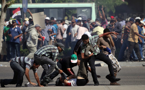 “They wanted to enter Tahrir so they could try to bring back Morsi, but we’ll never let that happen,” said Adel Ibrahim, 42, who carried a small satellite dish for a shield in one hand and stones in the other. “If the Islamists try to come back, we will all unite against them.”