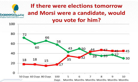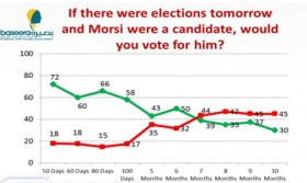 Baseera’s opinion poll, which was conducted in late in April, showed a downward trend in support for the Islamist president.