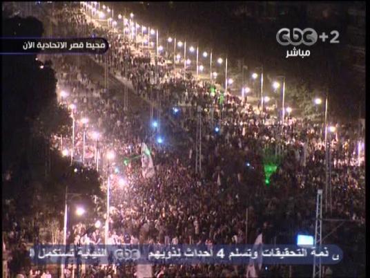 Marches starting from Nour Mosque in Abbasseya, Keshk Mosque in Hedayek al-Qubba and Al-Sa’a Square, Mostafa al-Nahhas and Abbas al-Aqqad streets in Nasr City will head to the palace at 4 pm.