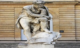 The statue was carved in 1875 by Frédéric-Auguste Bartholdi and is located in the main courtyard of the Collège de France.
