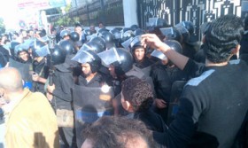 Sunday’s incident represents the second such clash between protesters and security forces outside Alexandria’s criminal court building since the trial first began.