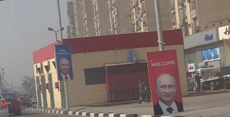 Hundreds of posters were hung in main streets around Cairo, with words of welcome written in Arabic, English and Russian.